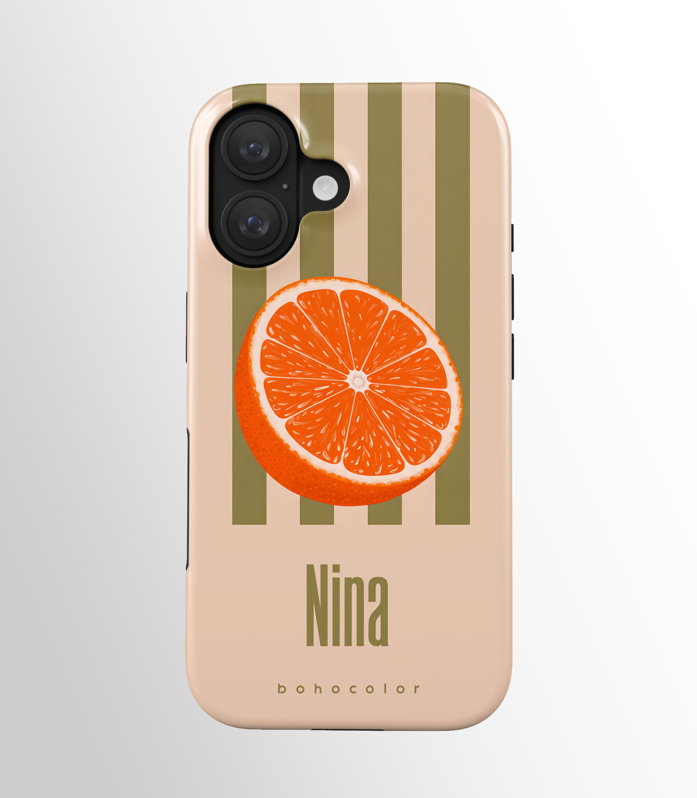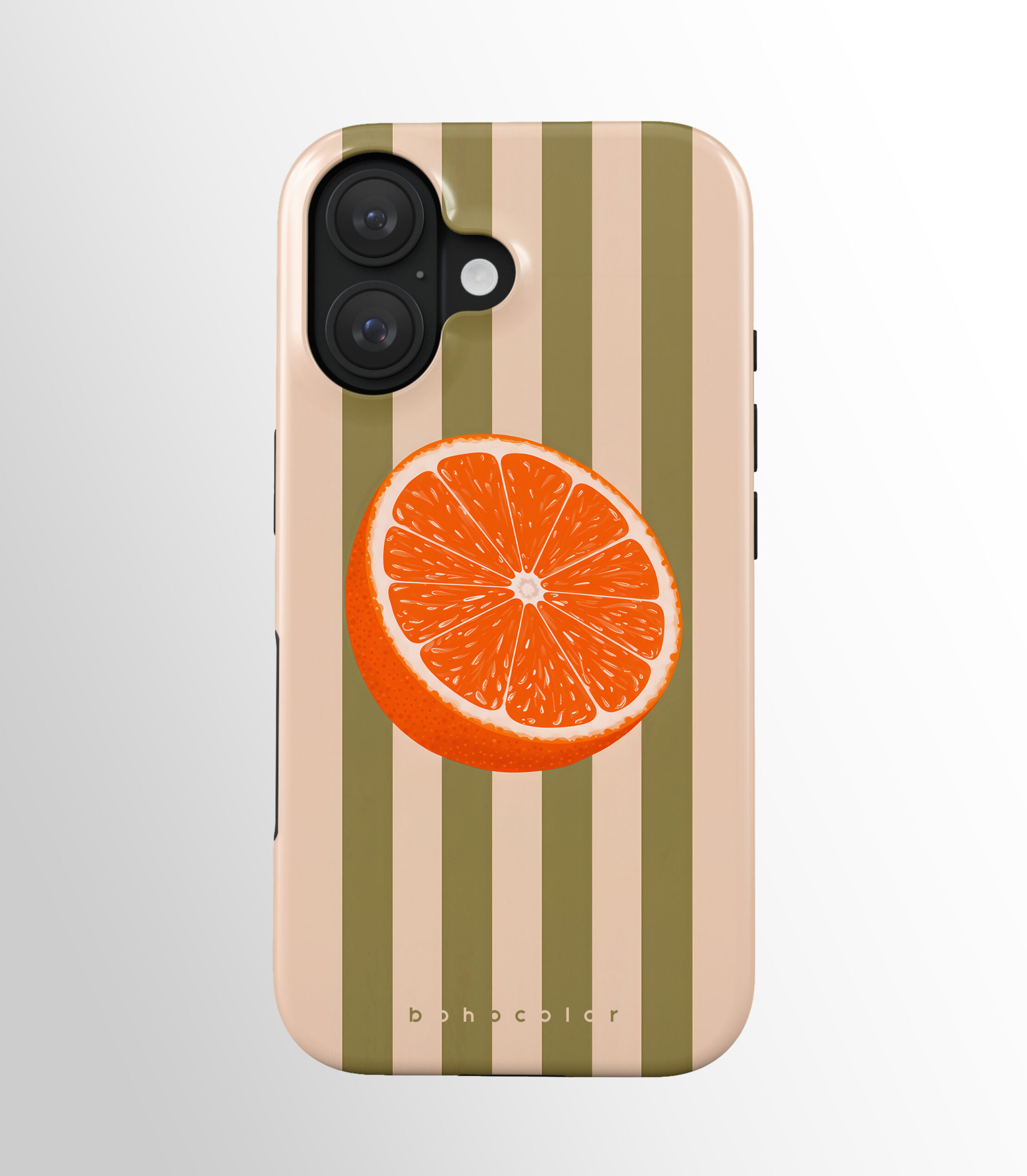Brighten your day with this vibrant personalized phone case. A juicy orange slice on chic stripes brings a playful, zesty energy. This custom phone case is a cheerful accessory, perfect for adding a pop of sunshine to your style.