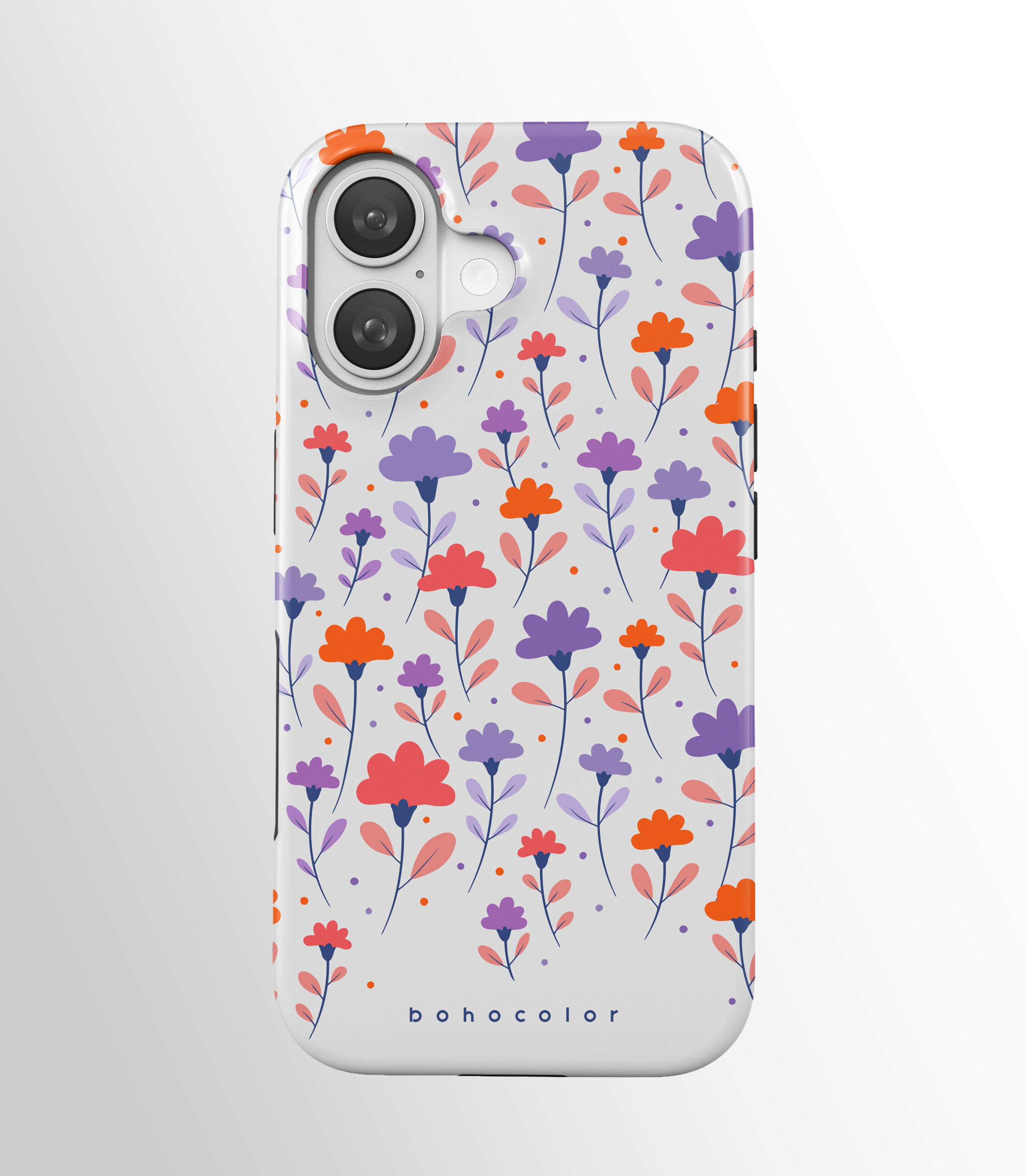 Discover a field of happiness with this enchanting personalized phone case. Playful colorful flowers in various sizes dance across the background. This custom phone case brings an upbeat and exciting garden party to your device.